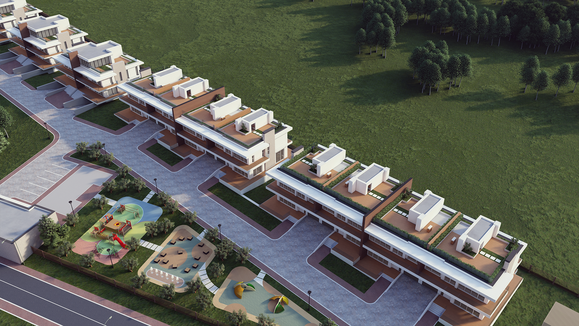 To the north of Ulaanbaatar city, to the Selbe River reservoir, fresh air and fresh water complex, and the Sanzai summer resort, we are introducing the newly planned "Sanzai Villa" town. The town is located along the road under the shelter of Khan Mountain, with a total of 22 families and 9 apartments, and each family had a private car garage. In the center of the villa, a 0.7ha pine grove was left untouched and the natural formations and plants were preserved as a small park. Public spaces for people of all ages to exercise and play have been planned, and engineering infrastructure has been provided without disturbing all residents. We aim to plan the town to meet all the needs of people for a comfortable, safe, and peaceful life.
